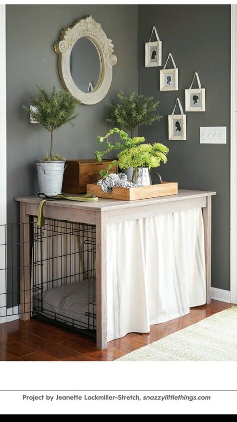 Pet crates, especially for larger dogs, can be quite the eyesore when living in a smaller apartment unit. Masking your crate as a table or side table is a wonderful decorating solution for pet owners. As an added bonus, this will also save you space in your rental!